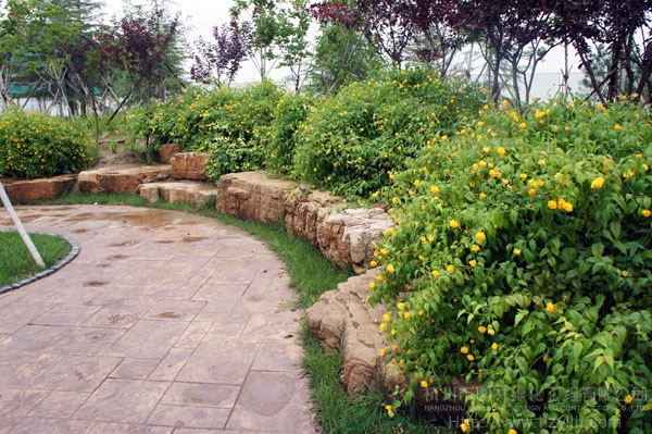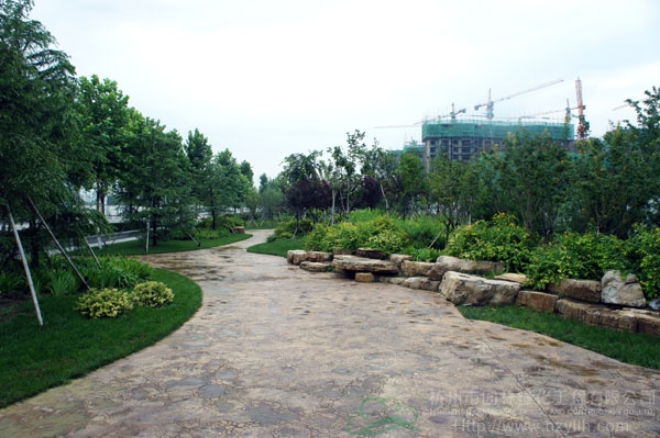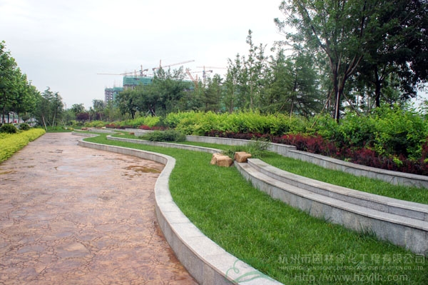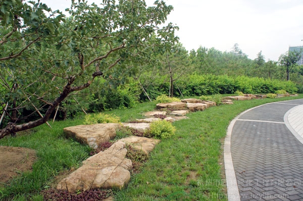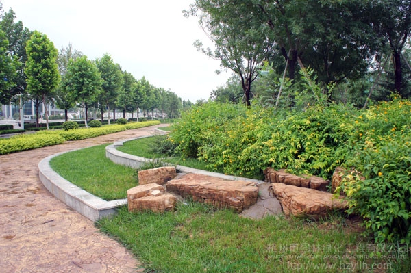 山東壽光市東環(huán)路東側(cè)綠化改造工程(圣城街-北環(huán)路)面積9萬平方米,施工范圍為機動車道與非機動車道之間2.5米的隔離綠化帶和30多米寬的路側(cè)綠化帶,施工內(nèi)容包括土方地形整理、綠化種植、園路鋪裝、景石擺放、景觀小品營建等。2009年9月開工,2010年7月竣工。經(jīng)過2年的精心養(yǎng)護,如今,這里樹木蔥郁,花草繁茂,一路走來,隨著多種風(fēng)格的園路在腳下延伸,風(fēng)景也在眼前不斷變化。