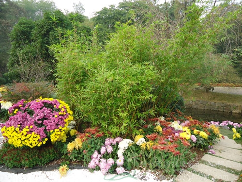 翠竹、菊花相映成趣