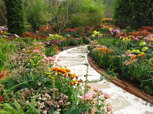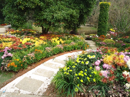 園路兩邊,菊花正艷