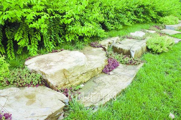 一路走下來,豐富多彩的植物配置讓人在炎炎夏日里的感受到絲絲清涼,而更讓人眼前一亮的,則是“腳下的風景”———園路。
