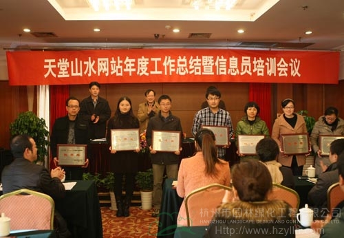 會議的重要環(huán)節(jié)之一為表彰先進。徐協(xié)平宣讀獲獎文件之后,周定炎、徐協(xié)平、繆梓倫為獲得2012年度“天堂山水”門戶網(wǎng)站的十佳單位、先進個人、優(yōu)秀子網(wǎng)站進行了頒獎。其中,杭州市園林綠化工程有限公司網(wǎng)站被評為“優(yōu)秀子網(wǎng)站”,于會蓮同志被評為信息宣傳工作“先進個人”。