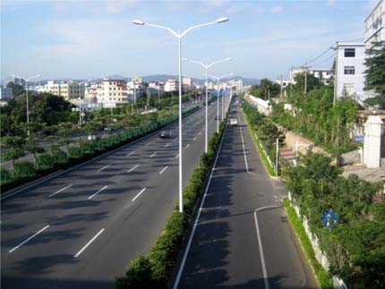 國道205深圳段改建景觀綠化工程G5402標段,是深圳市迎接“第26屆世界大學(xué)生運動會”的重點迎賓大道,位于國道205深圳段龍崗區(qū)地鐵三號線愛聯(lián)地鐵站至坪地與惠州市交界處,道路全長約20公里,綠化總面積210000平方米,施工內(nèi)容包括綠化種植、綠化噴灌與管道安裝等,由杭州市園林綠化工程有限公司承建。自2010年8月開工,至2011年8月竣工,歷時12個月。該工程最大的特色和亮點為:“以人為本,尊重自然”、“ 處處有綠葉,無處不飛花”等自然生態(tài)的設(shè)計理念貫穿始終;中央綠化帶位于高架橋下,長勢茂盛的各類植物形成一條繽紛絢麗的彩帶擁簇著高架橋段,使整條橋段與綠化景觀有機融合。2012年,該工程榮獲中國風(fēng)景園林學(xué)會“優(yōu)秀園林綠化工程金獎”。