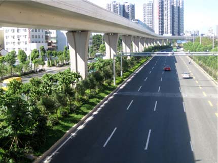 如今,開車行進在這條道路上,干凈整潔的路面、開闊通透的視野、清新自然的景觀,給人帶來閑適、愜意的感覺。“以人為本,尊重自然”的綠化理念,體現(xiàn)在景觀中的每個細節(jié);自然環(huán)境與城市環(huán)境的密切結(jié)合,使高架橋的道路通行功能與橋下中央綠化帶的生態(tài)功能有機融合。整條道路,不僅體顯出深圳這個濱海大都市獨有的景觀特色,更彰顯出這個城市的生機活力與熱情奔放。