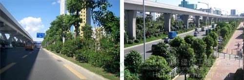 如今,開車行進在這條道路上,干凈整潔的路面、開闊通透的視野、清新自然的景觀,給人帶來閑適、愜意的感覺?!耙匀藶楸荆鹬刈匀弧钡木G化理念,體現(xiàn)在景觀中的每個細(xì)節(jié);自然環(huán)境與城市環(huán)境的密切結(jié)合,使高架橋的道路通行功能與橋下中央綠化帶的生態(tài)功能有機融合。整條道路,不僅體顯出深圳這個濱海大都市獨有的景觀特色,更彰顯出這個城市的生機活力與熱情奔放。
