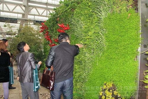 考察團(tuán)一行參觀青山湖?花園中心室內(nèi)賣場(chǎng)的綠墻