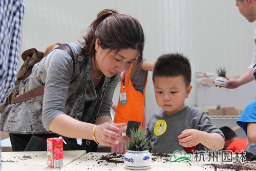 參觀完室內(nèi)賣場(chǎng),所有小朋友和家長(zhǎng)們來(lái)到了親子操作間,這里,有為他們準(zhǔn)備好的多肉植物、盆器、營(yíng)養(yǎng)土、裝飾品等。看到這些漂亮可愛(ài)的物品,大家都表現(xiàn)出了極大的興趣,在園藝師的帶領(lǐng)下,迫不及待地開(kāi)始了組盆活動(dòng)??鞓?lè)的時(shí)光過(guò)得真快,經(jīng)過(guò)小朋友們和父母通力合作,拼出了一件件漂亮的小盆栽,心滿意足地帶回家去。