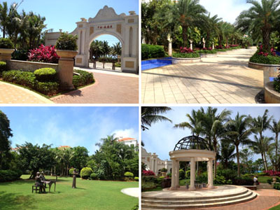 走進森海灣,紅瓦白墻、單邊回廊的建筑設計,與郁郁蔥蔥的植物一起,構(gòu)建了一個海灣童話城堡世界,營造出閑適、愜意、溫馨、雅致的居住氛圍。據(jù)項目負責人葉偉華介紹,作為一個高端住宅區(qū),森海灣對園林景觀的要求比較高,小區(qū)以中軸景觀帶為主景,設有游泳池、休閑草坪、疊水等,種植大王椰、霸王棕、鳳凰木、重陽木、中東海棗、老人葵等大樹襯托整個中央主景。各處庭院則選擇豐富多彩的樹種,采用不同的手法布局與建筑完美融合,透露出精細的西班牙情調(diào),用簡單詮釋浪漫,點綴悠閑的度假生活,使整個園林充盈著濃郁的熱帶風情。