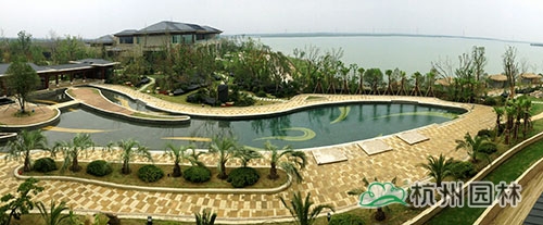 該酒店的景觀工程(一標段)由杭州市園林綠化股份有限公司承建,工程施工面積10萬余平方,施工內(nèi)容包括綠化種植、硬質(zhì)鋪裝、園路施工、景觀小品工程、樁基工程、給排水系統(tǒng)工程及景觀照明系統(tǒng)等。作為一個綜合性園林工程,該工程施工內(nèi)容多,工程量大,工藝相對復雜,對施工技術的要求較高。