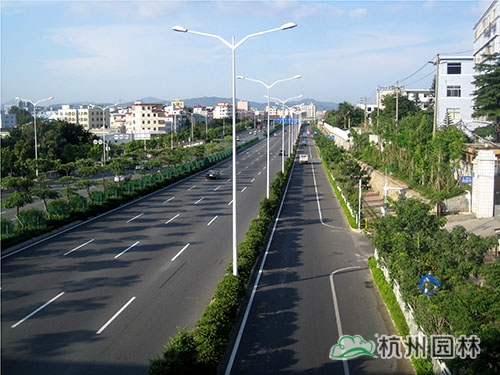 國(guó)道205深圳段改建工程景觀綠化工程G5402標(biāo)段,是深圳市龍崗區(qū)迎大運(yùn)重點(diǎn)景觀工程,位于國(guó)道205深圳段龍崗區(qū)地鐵三號(hào)線愛(ài)聯(lián)地鐵站至坪地與惠州市交界處,總綠化面積21萬(wàn)㎡?!耙匀藶楸荆鹬刈匀弧?、“ 處處有綠葉、無(wú)處不飛花”等設(shè)計(jì)理念貫穿于工程始終,整條中央綠化帶位于高架橋下,生長(zhǎng)茂盛的各類植物形成一條色彩繽紛的彩帶擁簇著高架橋段,使整體橋段與綠化景觀有機(jī)融合。整條道路的景觀,不僅體顯出一個(gè)濱海大都市獨(dú)有的景觀特色,更彰顯這個(gè)城市的生機(jī)活力與熱情奔放。
