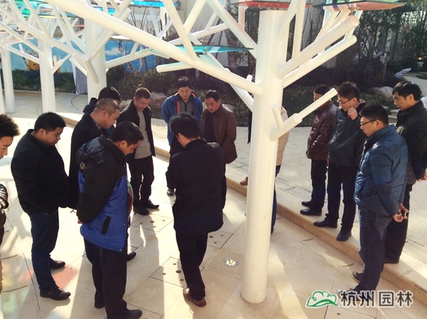 會議首先聽取了施工單位、監(jiān)理單位關(guān)于該工程施工及質(zhì)量情況的詳細總結(jié)與匯報。杭州市園林綠化股份有限公司項目負責人陳為有作為施工單位代表,就本項目的施工情況進行了介紹。隨后,參會人員一行來到工程現(xiàn)場,從硬質(zhì)景觀鋪裝、植物種植、亮化燈具安裝質(zhì)量等各方面進行檢查驗收?,F(xiàn)場驗收結(jié)束后,各相關(guān)單位代表就發(fā)現(xiàn)的問題進行了總結(jié)和表態(tài)發(fā)言。