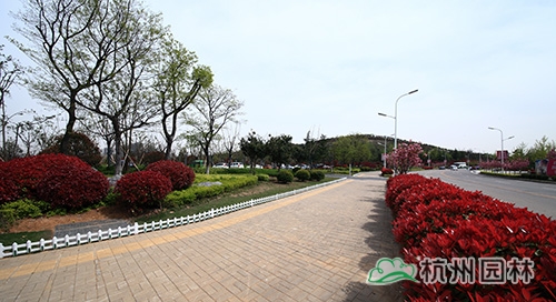 為恢復(fù)植被,修復(fù)裸露的山體,工程中應(yīng)用了大量的植物,其中,榔榆、喜樹、樸樹、三角楓、黑松、香樟、銀杏、無患子、女貞、欒樹、七葉樹、五角楓、楓香、雪松、烏桕、廣玉蘭、黃連木、黃金槐、馬褂木等喬木50余品種,2.3萬余株,鄉(xiāng)土樹種占88%;垂絲海棠、映山紅、櫻花、紫薇、金絲繡球、含笑、紫葉李、茶梅、紅梅、紅櫨等花灌木100余品種,2.5萬余株;紅葉石楠、金森女貞、扶芳藤、南天竹、灑金珊瑚、水果蘭、六道木、檉柳、衛(wèi)矛、無刺枸骨、毛鵑、連翹、金鐘、迎春、紅花檵木等綠籬40余品種,面積約4.1萬平方米;各種宿根、球根、時令花卉和水生植物,如薰衣草、金雞菊、郁金香、鳶尾、牡丹、金絲桃、珍珠梅、繡線菊、美人蕉、荷蘭菊、蒲公英、亞菊、玉龍草、八仙花、瓊花、月季、薔薇等80余品種,面積約2.8萬平方米;鋪設(shè)草坪及地被麥冬等面積約8.7萬平方米。豐富的植物應(yīng)用,使得原本裸露的山坡披上了綠色的盛裝,公園內(nèi),春有百花爭艷,夏有綠蔭匝地,秋有金色滿園,即使到了冬天,也仍能看到滿山的綠色與生機。
