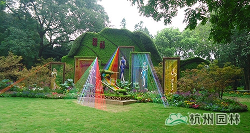 《古韻良緣》:利用一些古時婚嫁常見的婚床、拜堂桌臺、喜轎等婚嫁元素組合而成,反映了中國傳統(tǒng)的婚禮場景。利用日常修剪的枯枝、落葉等園林廢棄物作為小品構(gòu)架的主要材料,表達了現(xiàn)代自然、生態(tài)、環(huán)保的設(shè)計理念。