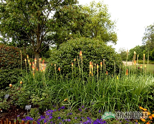 火炬花葉長至二三十厘米即開始下垂,但其花序長可達(dá)80-100cm,在花境中常用作焦點(diǎn)或背景材料。