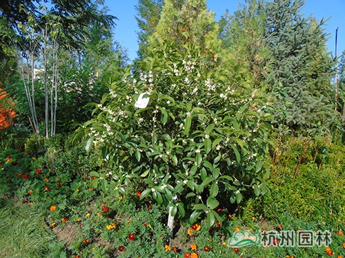花博會(huì)開放時(shí)間是9月份,為配合開園需要,根據(jù)不同植物的開花特性及要求,采取相應(yīng)的措施,確保植物的最佳觀賞效果。桂花是杭州市市花,是集綠化、美化、香化于一體的優(yōu)良園林樹種,一般在仲秋時(shí)節(jié)綻放,“浙江園”的桂花全部精選自杭州畫境種業(yè)有限公司,提前運(yùn)送至銀川之后,利用當(dāng)?shù)氐牡蜏丨h(huán)境誘使其完成花芽分化,在開園時(shí)營造了桂花滿樹、滿園飄香的氛圍。八仙花又名繡球,花大色美,是長江流域著名觀賞植物,在明、清時(shí)代建造的江南園林中就栽有八仙花。特別是八仙花‘無盡夏’具有多次開花的特點(diǎn),項(xiàng)目人員通過修剪、培育,促進(jìn)其花芽的再次分化,使展園內(nèi)的八仙花處于生長繁茂、花團(tuán)錦簇的良好狀態(tài)。此外,還結(jié)合公司“一種紅楓快速成景方法”等專利,運(yùn)用摘葉等形式促進(jìn)槭樹科植物萌發(fā)新葉,為九博會(huì)的開幕增添新的色彩。