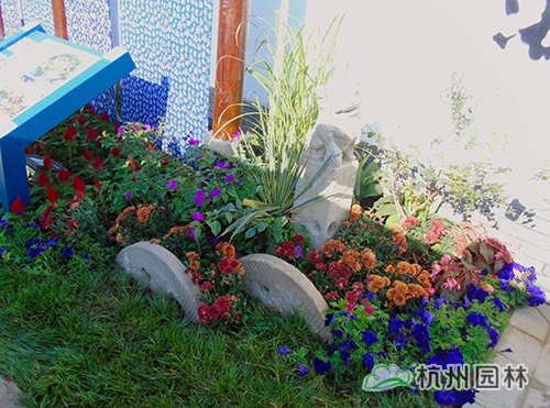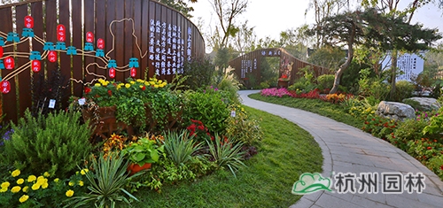 考慮到銀川的干燥氣候,垂直綠化墻植物的保濕成為難題?!罢憬瓐@”垂直綠化墻以無紡布為墻體材料,使用保濕性強(qiáng)的基質(zhì),優(yōu)選植物種類,同時(shí)搭配滴灌系統(tǒng),保證了綠化墻鮮花擁簇的景象。展園內(nèi)的垂直綠化墻設(shè)計(jì)簡潔、曲線優(yōu)美,與以錢塘江文化為主題的背景墻相互映襯,共同展現(xiàn)了新時(shí)期浙江園林景觀的不斷發(fā)展與創(chuàng)新。
