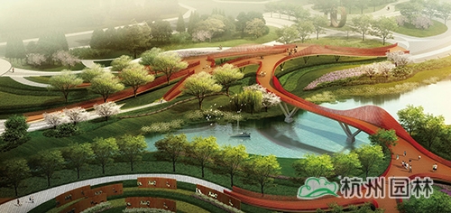 樂活園藝主題區(qū):以家庭園藝花園為主,是公園的圩田濕地體驗(yàn)中心,水道如巷,河汊如網(wǎng)的圩田農(nóng)藝景觀,呈現(xiàn)出田園牧歌般的意境。包含飄帶走廊、水蕩花田等景點(diǎn)。