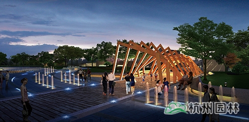 渡航廣場(chǎng):鉆石形狀的綠坡結(jié)合船型夾板造型,寓意破浪前行的渡船,象征肥西人民開拓進(jìn)取的時(shí)代精神。