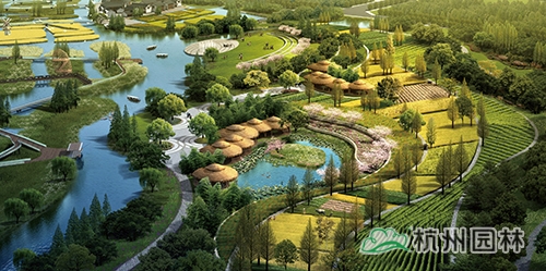 養(yǎng)生休閑主題區(qū):對(duì)原有的生產(chǎn)景觀保留改造,水稻田、葡萄園、油菜園、果園、苗圃以及可食用水生植物被布置其中,兼具經(jīng)濟(jì)與觀賞價(jià)值,結(jié)合水莊、竹庭、有機(jī)菜園,酒莊等休閑景點(diǎn),推廣宣傳現(xiàn)代都市農(nóng)業(yè)。