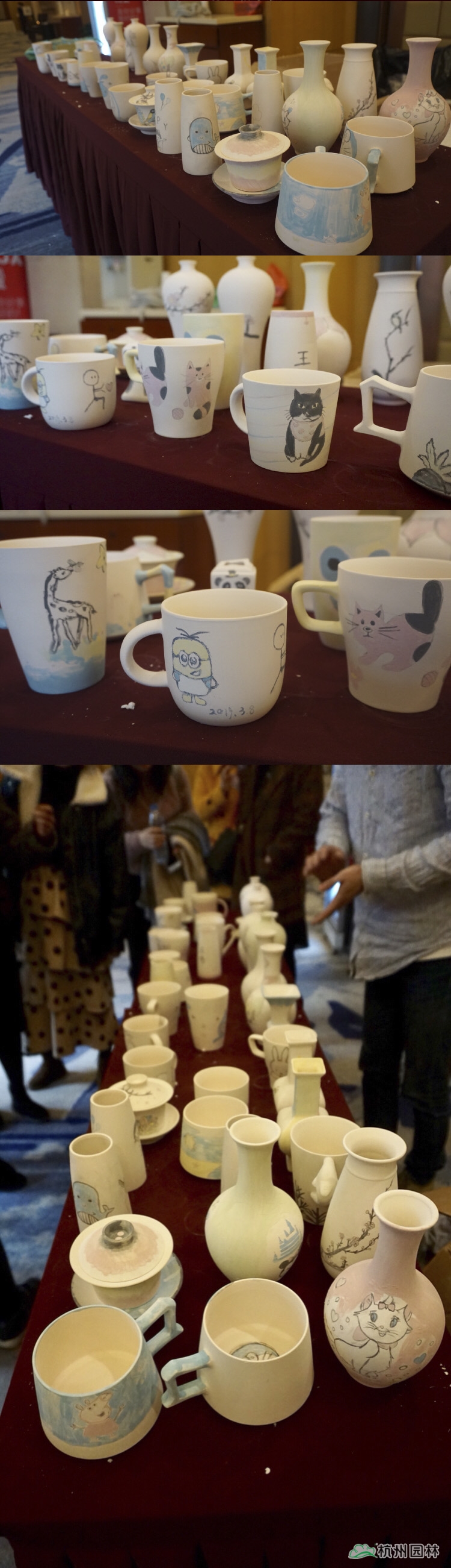 說(shuō)起陶藝,大家想到的肯定是雙手扶著轉(zhuǎn)盤(pán)上的陶泥,捏出形態(tài)各異作品的場(chǎng)景,但今天我們玩點(diǎn)不一樣的。素胚固然清爽,但少了色彩的點(diǎn)綴,總會(huì)覺(jué)得好像黑白電影略顯枯燥。是的,這次我們將畫(huà)紙搬到了這些瓶瓶罐罐之上。認(rèn)真的女人真的很美,一幅幅生動(dòng)的畫(huà)作在短短的一個(gè)多小時(shí)的時(shí)間里展現(xiàn)在了大家的眼前。有山水,有動(dòng)物,有卡通畫(huà),有說(shuō)要送給家中寶寶的,也有說(shuō)這代表了我們一家三口的。拿起畫(huà)筆的小仙女們,不再是那些個(gè)日常辦公室里的形象了,她們?cè)诮裉?,把自己的可?ài)、風(fēng)趣、溫婉、隨性等等面貌展現(xiàn)得淋漓盡致。