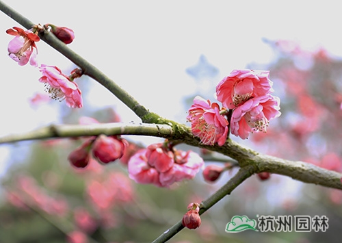 梅花Armeniacamume Sieb,薔薇科梅屬,落葉喬木,高達(dá)10m?;?/span>l~2朵單生,具短梗,芳香,在冬季或早春葉前開(kāi)放。梅樹(shù)蒼勁古雅,疏枝橫斜,梅花傲霜斗雪、凌寒獨(dú)開(kāi)、清雅俊逸。栽培歷史長(zhǎng)達(dá)2500年以上。古樸的樹(shù)姿,素雅的花色,秀麗的花態(tài),恬淡的清香,和豐盛的果實(shí),自古以來(lái)就為廣大人民所喜愛(ài),為歷代著名文人所謳歌。賞梅之風(fēng)自古至今連綿不絕,賞梅以聞香、觀姿、品風(fēng)骨為主。