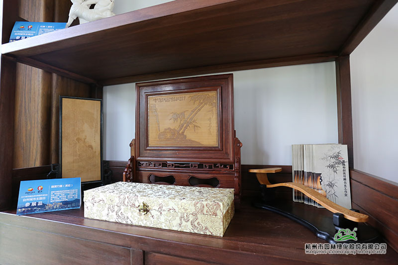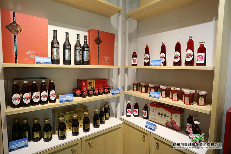 負(fù)一層展廳內(nèi),不僅循環(huán)播放著臺(tái)州城市形象、旅游景區(qū)、山海風(fēng)光、生態(tài)文明建設(shè)、“兩山”理論成果的宣傳片,還展示了臺(tái)州特色的茶葉、烏藥黃精、楊梅制品、無(wú)患子系列產(chǎn)品、木竹工藝品等特色林產(chǎn)品。