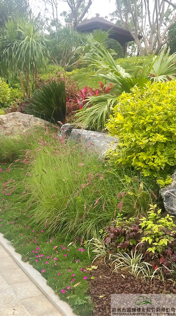 植物倒邊曲線種植,避免出現(xiàn)祼露的土壤