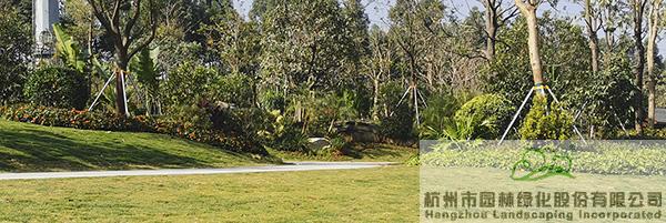 地被植物和小灌木充實園林的下層空間,往往起到“鑲邊”的效果,如果種植不好,很容易使底部出現(xiàn)裸露的土壤,景觀效果大打折扣。而該項目在現(xiàn)場放樣之后,先對地形進(jìn)行處理,形成一定的坡度,然后在地被植物或小灌木種植時,上面坡度高的地方平種,隨著逐漸向下方邊緣靠近,植物種植向下方傾斜,逐步過渡,從上到下形成弧線,將土壤遮蓋?!斑@種處理手法,不但使下層空間看著自然美觀,而且避免了地面出現(xiàn)裸露情況?!比~偉華的言語中,不經(jīng)意間流露的,是杭園人對細(xì)節(jié)的極致追求。