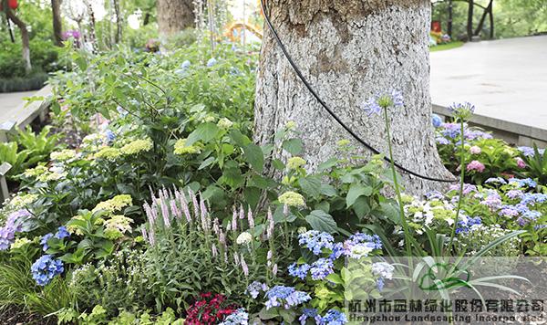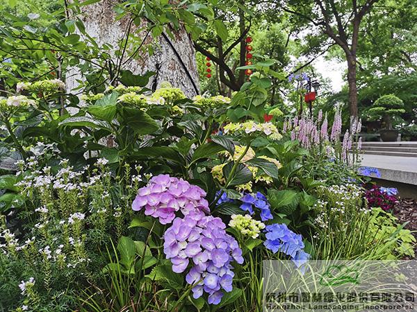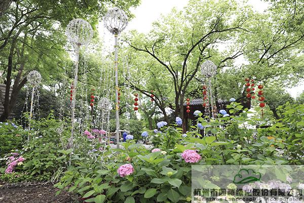 作為本次活動(dòng)的贊助單位,杭州市園林綠化股份有限公司聯(lián)手繡球花產(chǎn)業(yè)國(guó)家創(chuàng)新聯(lián)盟,在城隍閣古樹平臺(tái)布置了《花落花開,年華度》為主題的八仙花景觀展示區(qū),“閣樓觀湖二十年,繡球花燈滿堂前”,通過(guò)代表浪漫與愛(ài)情之美的繡球花境組團(tuán),結(jié)合錯(cuò)落有致的景觀挑燈和蜿蜒向前的時(shí)間軸序,營(yíng)造出繁花如繡、前程似錦的美好寓意,以此向城隍閣開放20周年獻(xiàn)禮。