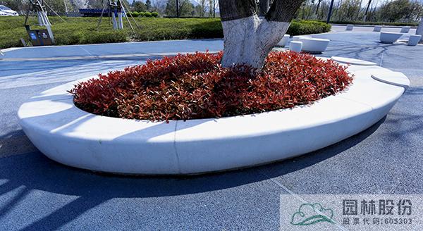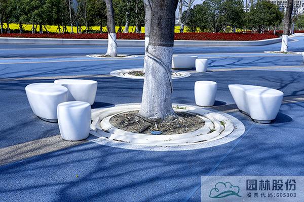 造型豐富美觀的泰科石坐凳和樹池是項目中的一大亮點。在波紋廣場和兒童樂園等地方,采用高強(qiáng)度復(fù)合無機(jī)泰科石材料,造型為圓形、橢圓形、異形的各種坐凳和樹池,錯落有致地分布,潔白的顏色與彩色的混凝土鋪裝相映成趣,既可以作為行人休憩的地方,又成為景觀的一部分。這些坐凳和樹池均以模具工藝成形,造型美觀,集現(xiàn)代休閑與實用功能于一體,表面光滑平整,自潔性好,抗污染強(qiáng),維護(hù)簡單,只需擦拭后水管沖洗即可。