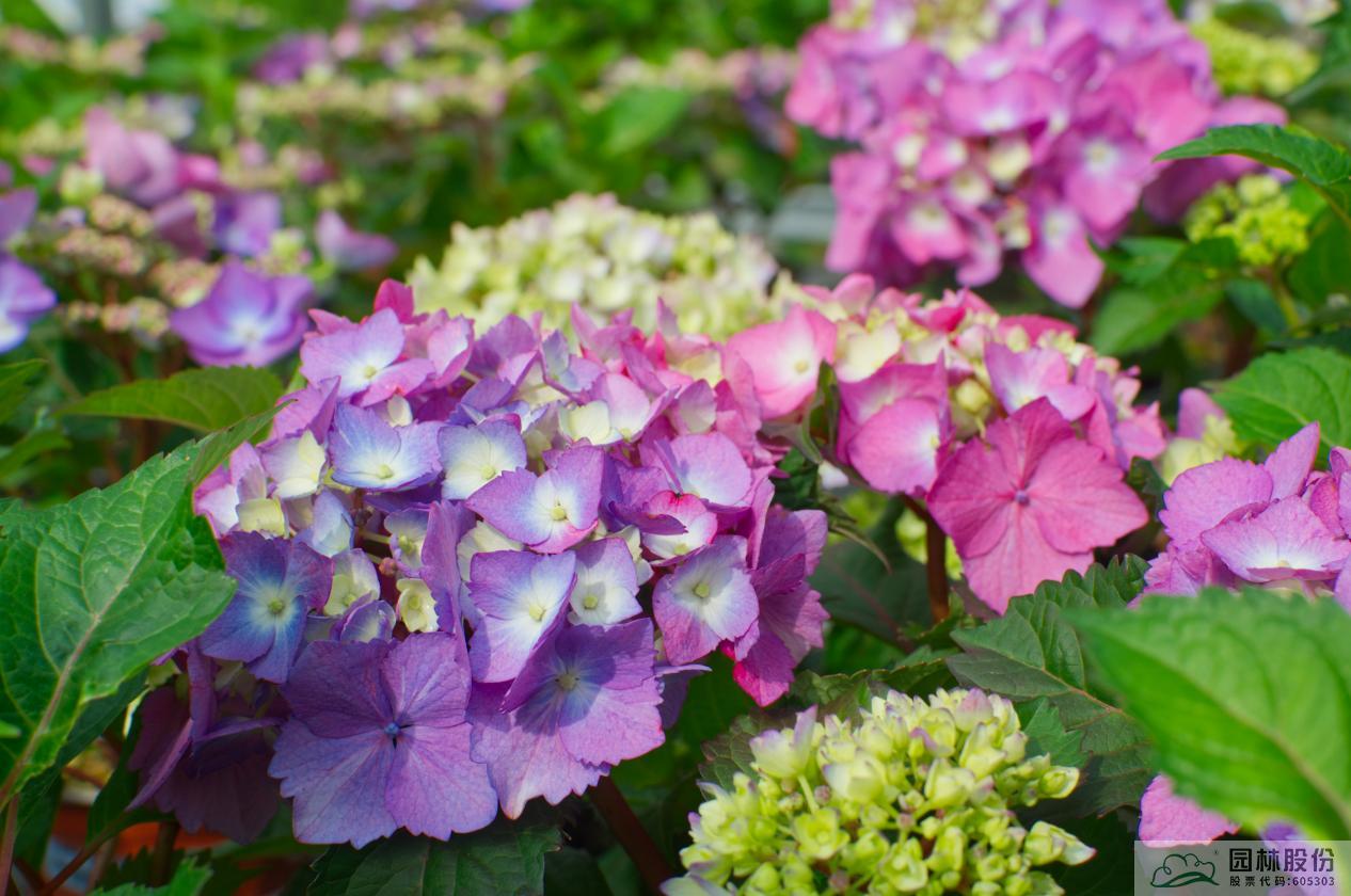 繡球品種繁多,花色豐富,在杭州市園林綠化股份有限公司的研發(fā)基地里,企業(yè)自主培育的青山系列繡球,已有20個(gè)品種。該系列繡球品種具有植物強(qiáng)健、直立性好、抗逆性強(qiáng)、花期早、開(kāi)花時(shí)間長(zhǎng)、花色艷麗豐富等特性。