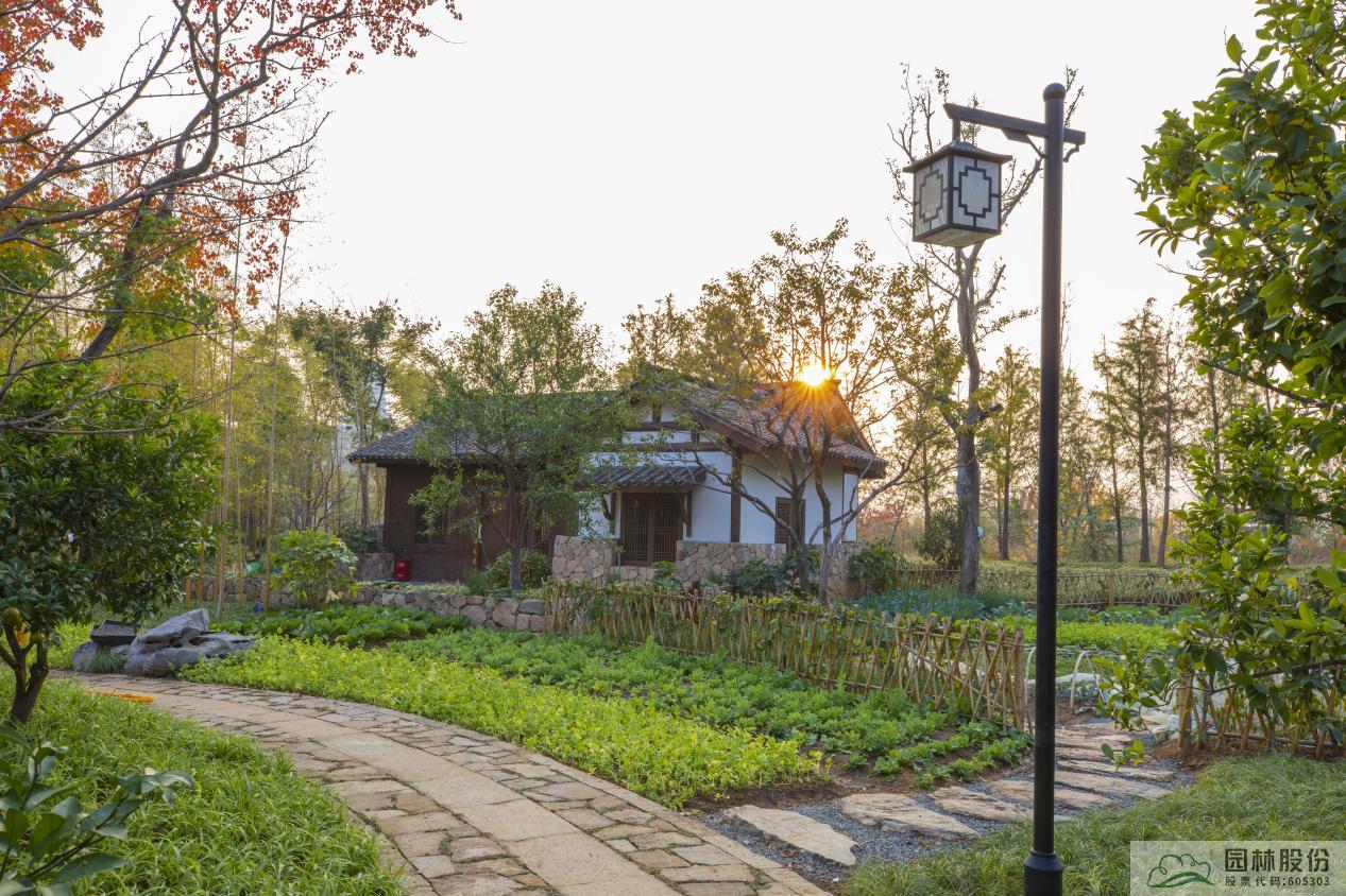 整個(gè)園區(qū)主要種植黃山欒樹、楓香、桂花等植物,植物景觀分為六個(gè)展示區(qū)。其中,翠竹園以散生竹為主,營(yíng)造翠竹掩映的效果;庭院植物以羽毛楓、桂花、紫薇等為主,在湖邊駁岸、庭院等小空間以花境組團(tuán)形式,營(yíng)造精致雅靜的植物景觀;花園植物區(qū)以康養(yǎng)植物為主,營(yíng)造清新而有益的花園空間,放松身心;茶園區(qū)以茶園的形式,展示西湖的茶園慢生活;彩葉山林植物模擬西湖常綠落葉闊葉混交林植物群落,以杭州鄉(xiāng)土植物為主,打造自然優(yōu)美、秋色迷人的風(fēng)景林;現(xiàn)代田園區(qū)以果蔬花園、田埂農(nóng)作、設(shè)施農(nóng)藝等形式展示現(xiàn)代詩意棲居的田園生活。