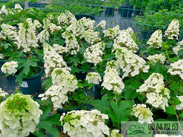 虎耳草科繡球?qū)伲淙~灌木;成株高度100-150 cm,成株冠幅 80-150 cm;葉片掌狀,長寬接近,3~7 裂;花期6-10 月,圓錐花序,花朵密集型,盛花時(shí)碩大醒目的花序可達(dá) 30 cm 以上,初期翠綠色,中后期花色逐漸轉(zhuǎn)白,秋季晝夜溫差大會(huì)使其逐漸暈染上粉紅色;老枝開花,成年植株花期觀賞效果極佳,花后修剪,平時(shí)只需修剪重疊枝、病殘枝即可,以免影響第二年開花;耐熱耐寒,喜溫暖和偏蔭蔽的環(huán)境,微酸性土壤;株型高大,枝條挺拔,樹冠寬闊豐滿,花球碩大;櫟樹一樣的掌狀葉片,到秋季會(huì)轉(zhuǎn)變?yōu)樯罴t色,紅葉期一般從每年的深秋至次年的5月,是一種既可觀花、又可賞葉的彩葉灌木。