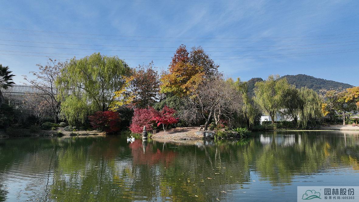 金黃的無患子、絢麗的紅楓、黃紅變換的楓香構(gòu)成了畫境園初冬繽紛世界的三部曲。半島的烏桕、池塘對岸的水杉水松池杉混交林,則如跳動的音符,共同譜寫著初冬的樂章。